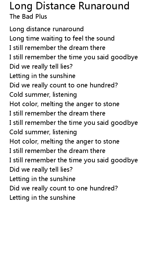 Long distance runaround |