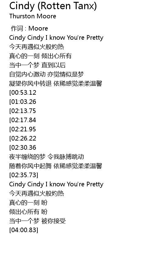 | [03:38.62] | Cindy Cindy I know You' re Pretty |