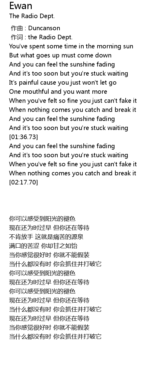 | [00:41.63] | And you can feel the sunshine fading |