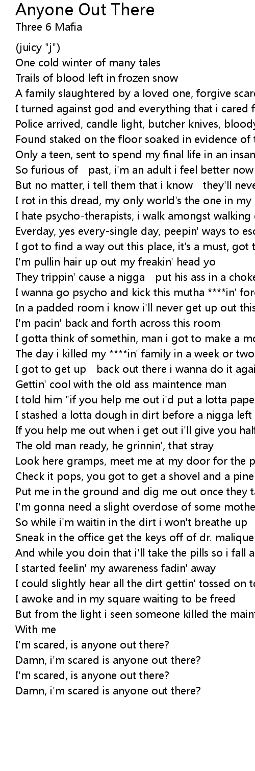 | Damn, i' m scared is anyone out there? |