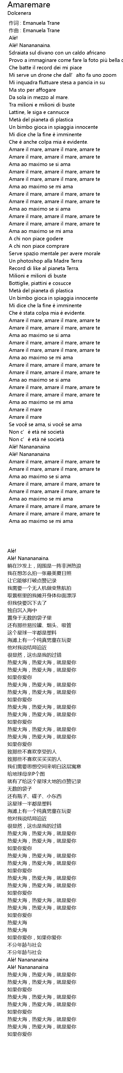 | [00:49.045] | Amare il mare, amare il mare, amare te |