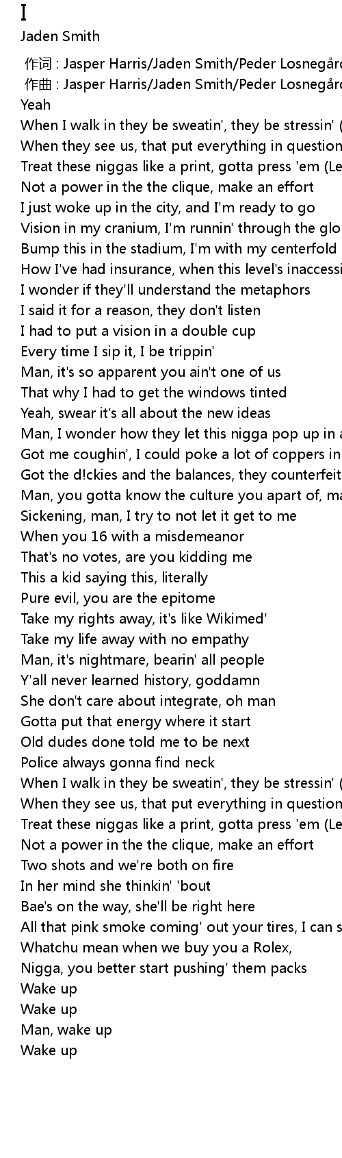 | [00:00.00] | 作词 : Jasper Harris/Jaden Smith/Peder Losnegård |