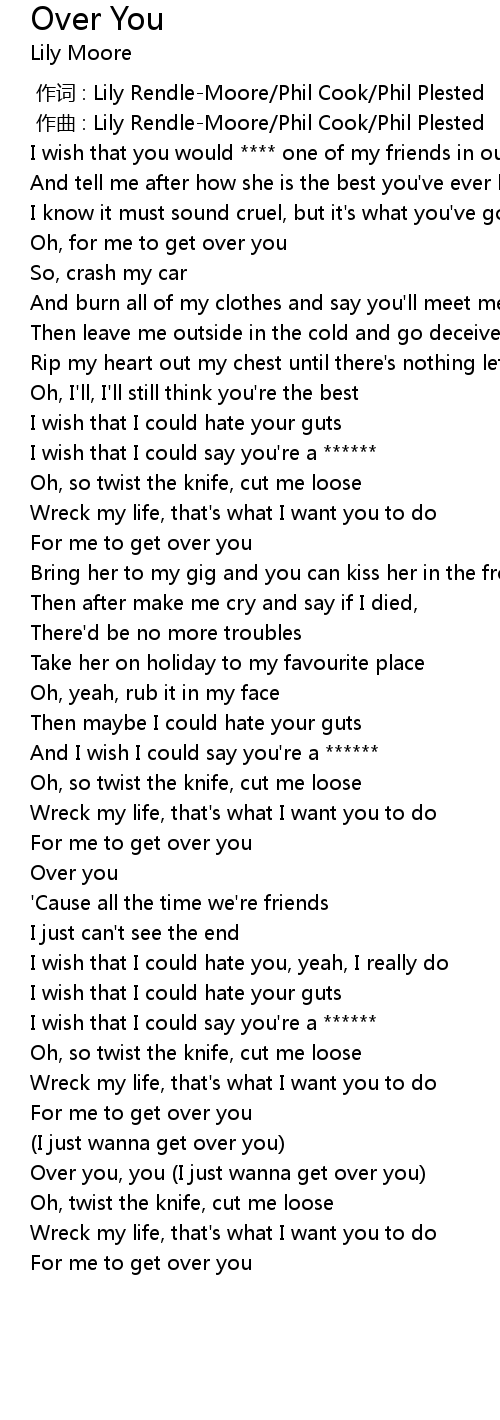 | [02:50.78] | Over you, you (I just wanna get over you) |