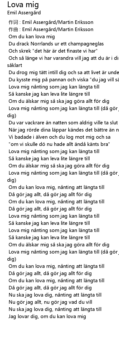 | 歌曲 | Lova mig |