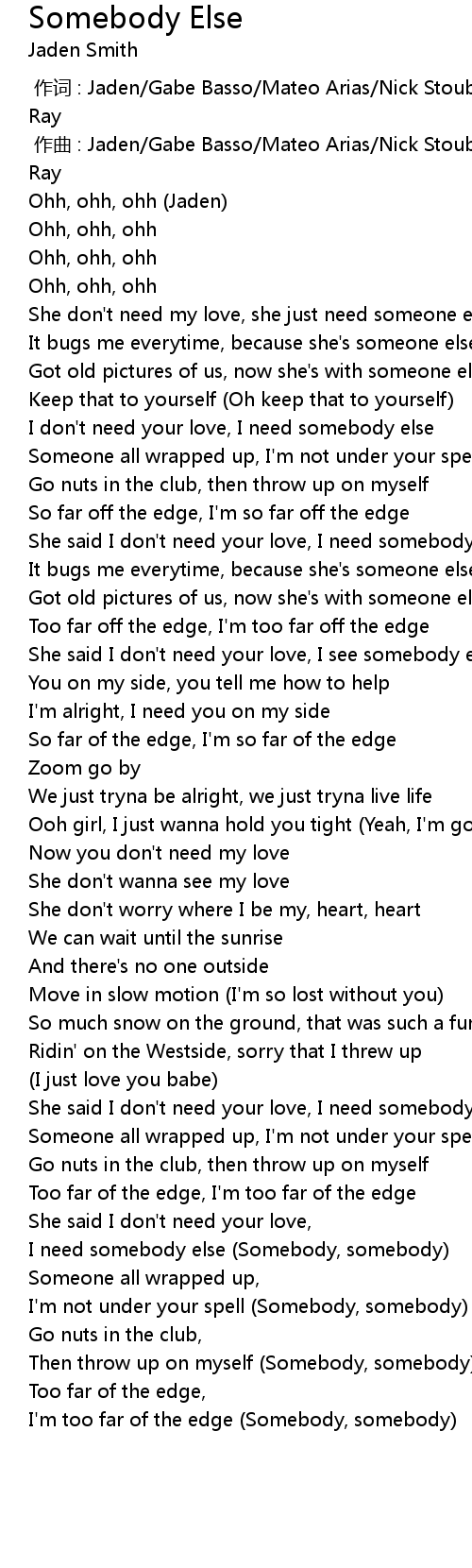| [03:13.19] | I need somebody else (Somebody, somebody) |