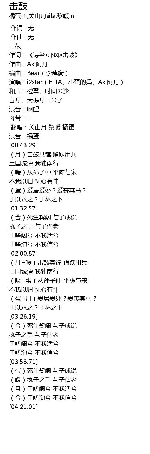 | [02:43.95] | (月+暖)击鼓其镗 踊跃用兵 |