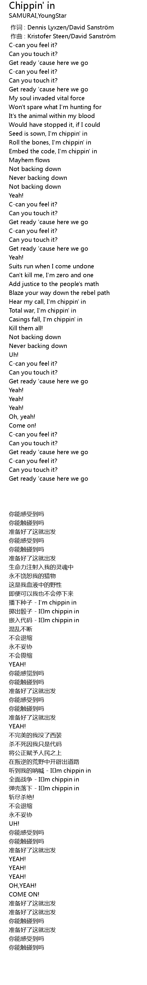 | [00:00.000] | zuò cí : Dennis Lyxzen David Sanstr m |