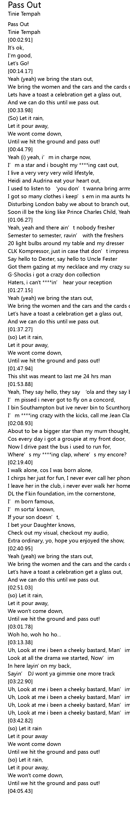| [00:01.41] | Pass Out |