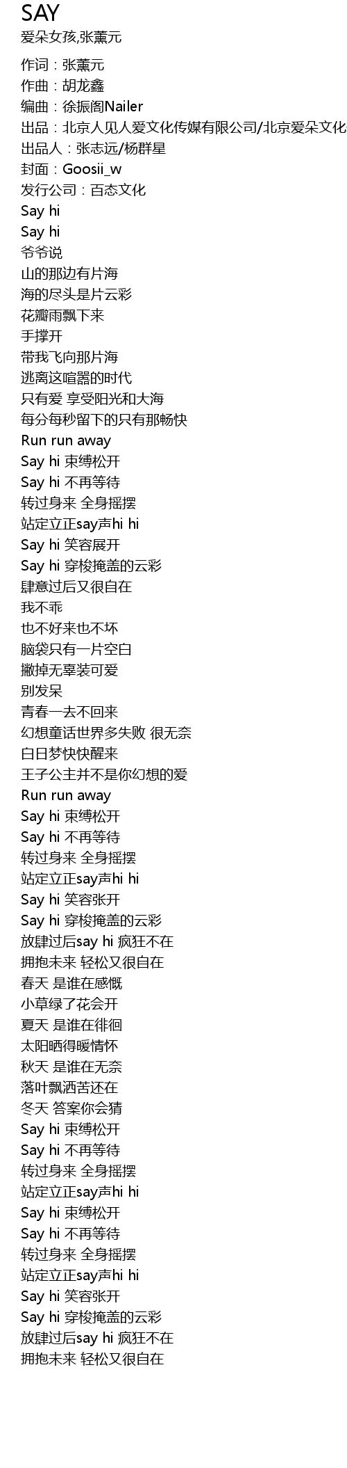 | [01:26.72] | Say hi 笑容展开 |