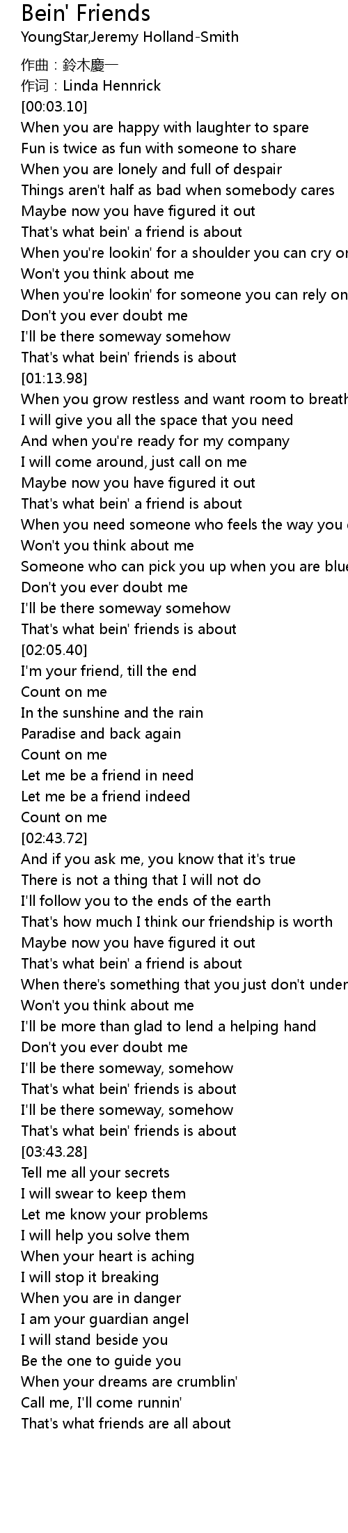 | [03:38.26] | That' s what bein' friends is about |