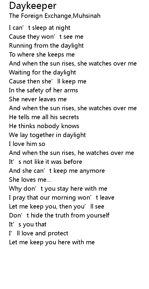 | 歌曲 | Daykeeper |