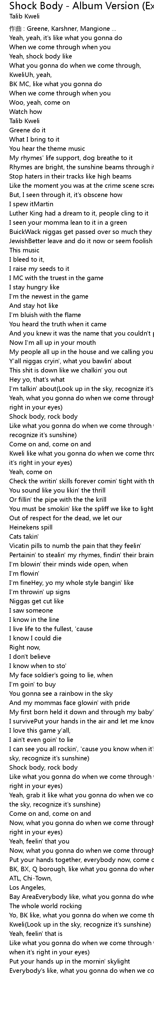 | 歌曲 | Shock Body - Album Version (Explicit) |