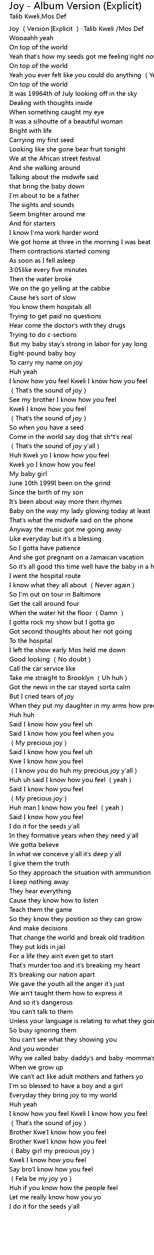 | [00:00.00] | Joy (Version |Explicit )-Talib Kweli /Mos Def |