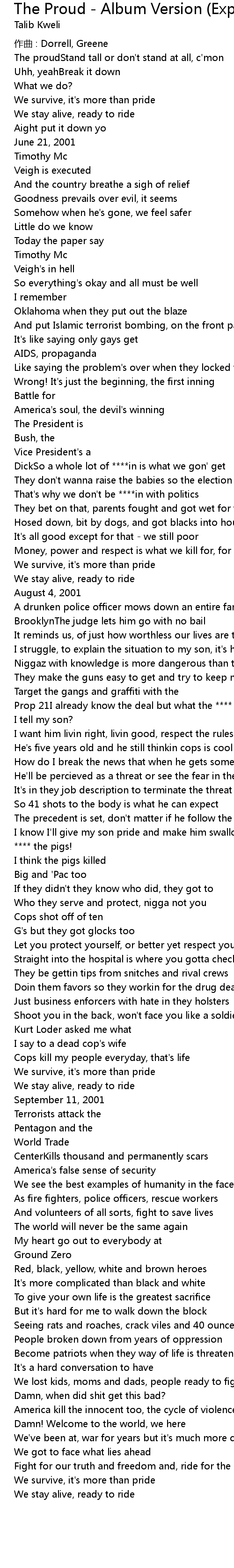 | 歌曲 | The Proud - Album Version (Explicit) |