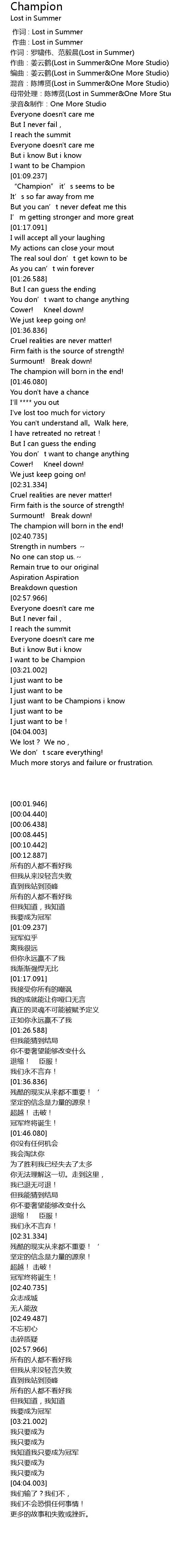 | [00:10.442] | mǔ dài chǔ lǐ: chén bó xián Lost in Summer One More Studio |
