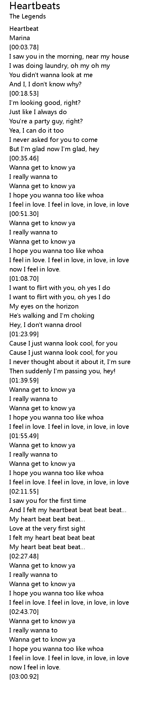 | [02:25.46] | My heart beat beat beat |