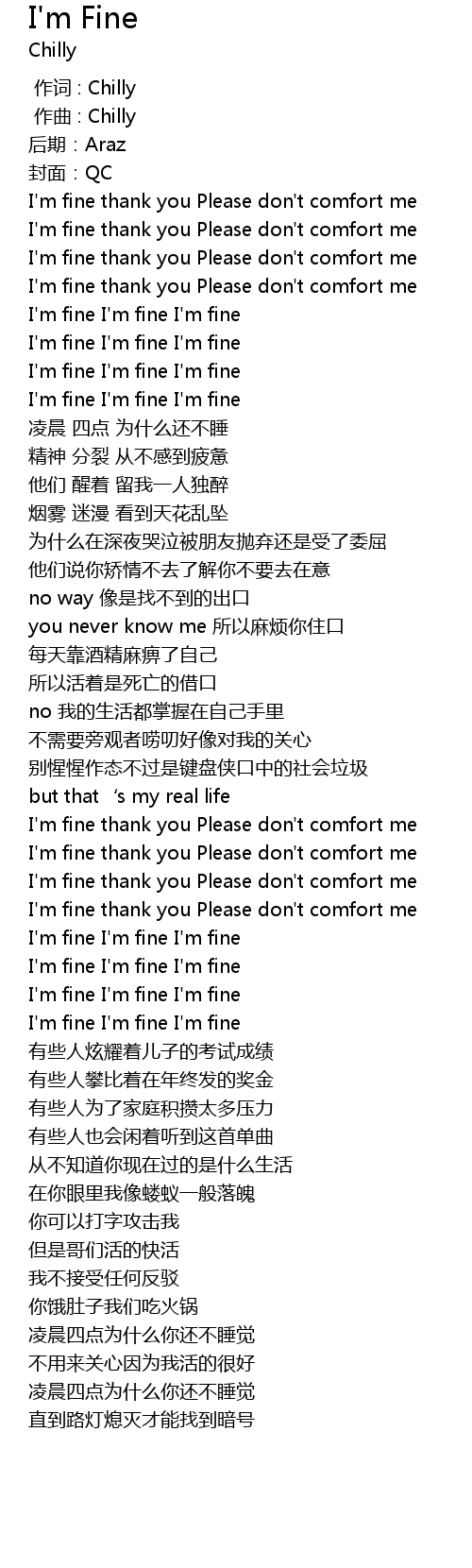 | [01:48.102] | I' m fine I' m fine I' m fine |