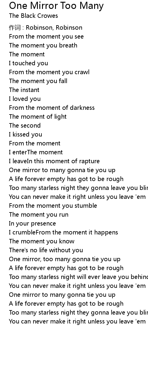 | 歌曲 | One Mirror Too Many |