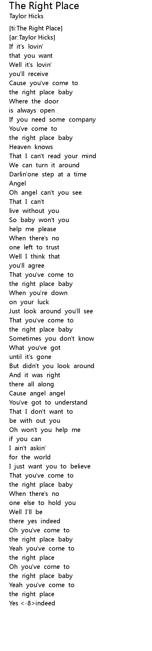 [ti:The Right Place] |