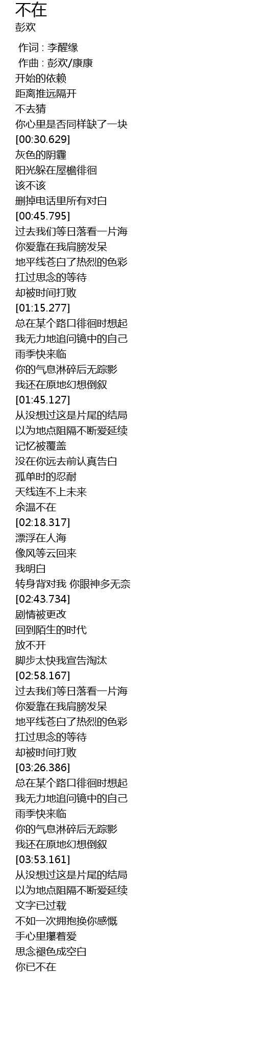 | [00:01.000] | 作曲 : 彭欢/康康 |
