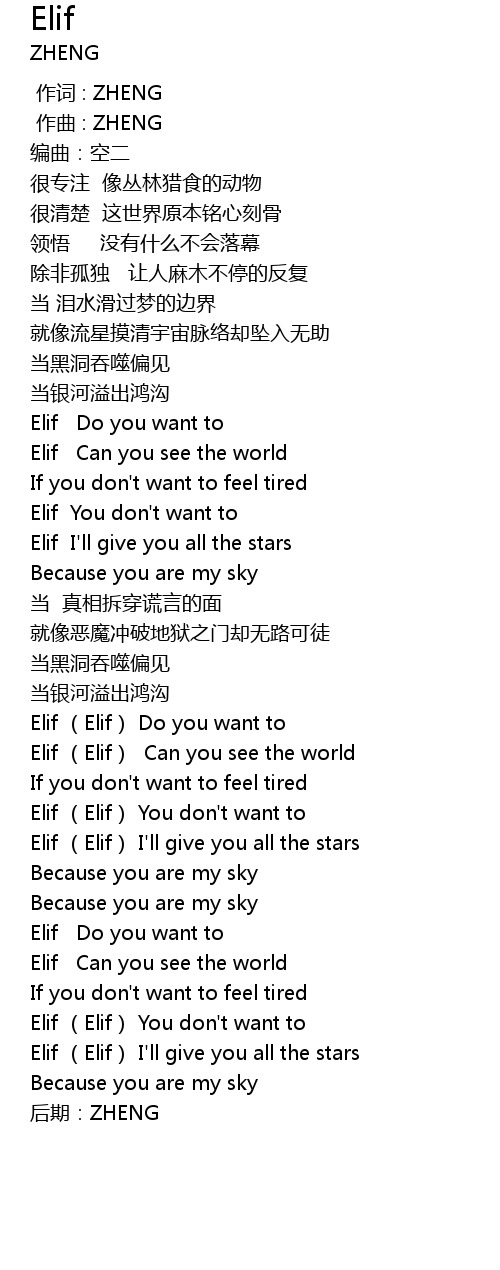 | [02:55.63] | Elif Elif I' ll give you all the stars |