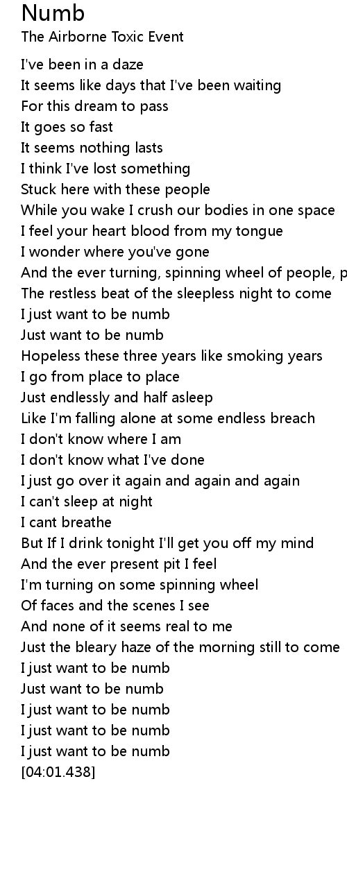 I just want to be numb |