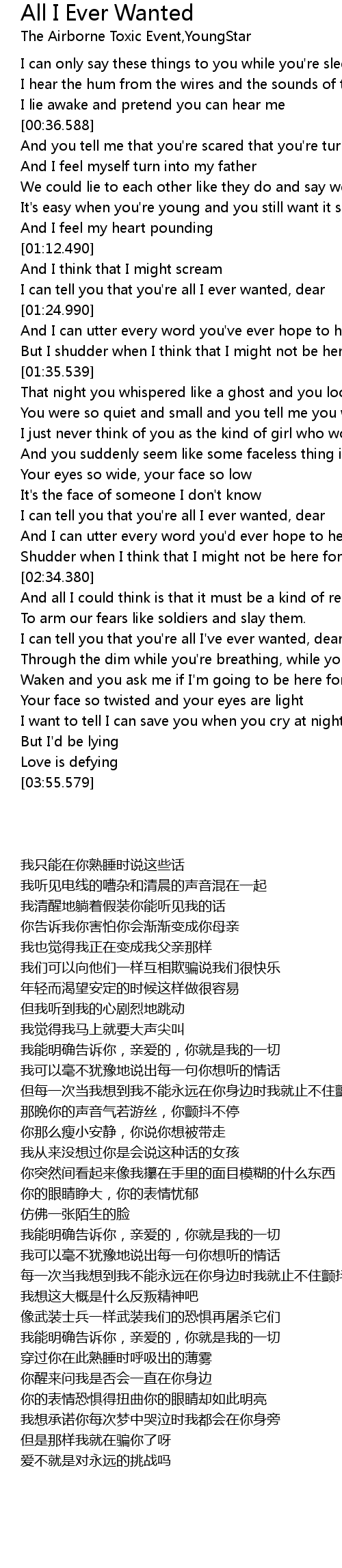 | [03:26.290] | I can tell you that you' re all I' ve ever wanted, dear |