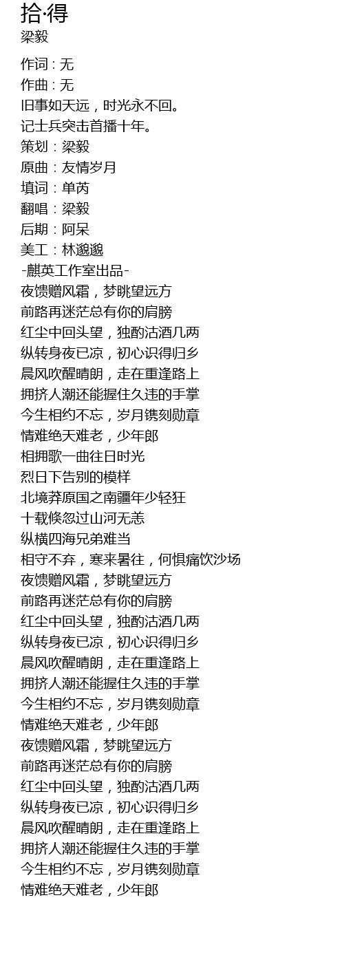 | 专辑 | 【记士兵突击首播十周年】拾·得 |