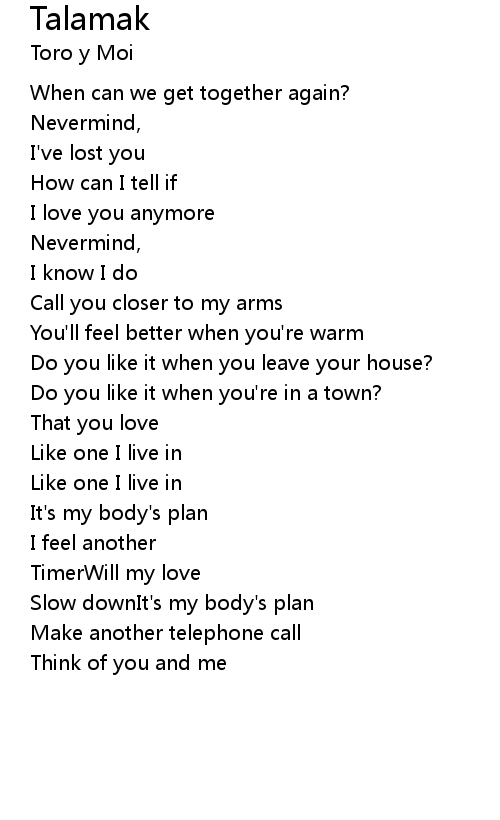 | When can we get together again? | |