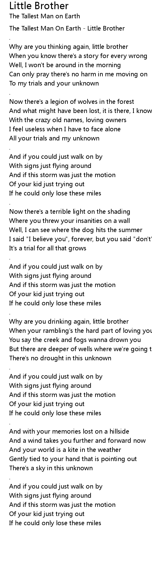 [00:00.05] The Tallest Man On Earth - Little Brother