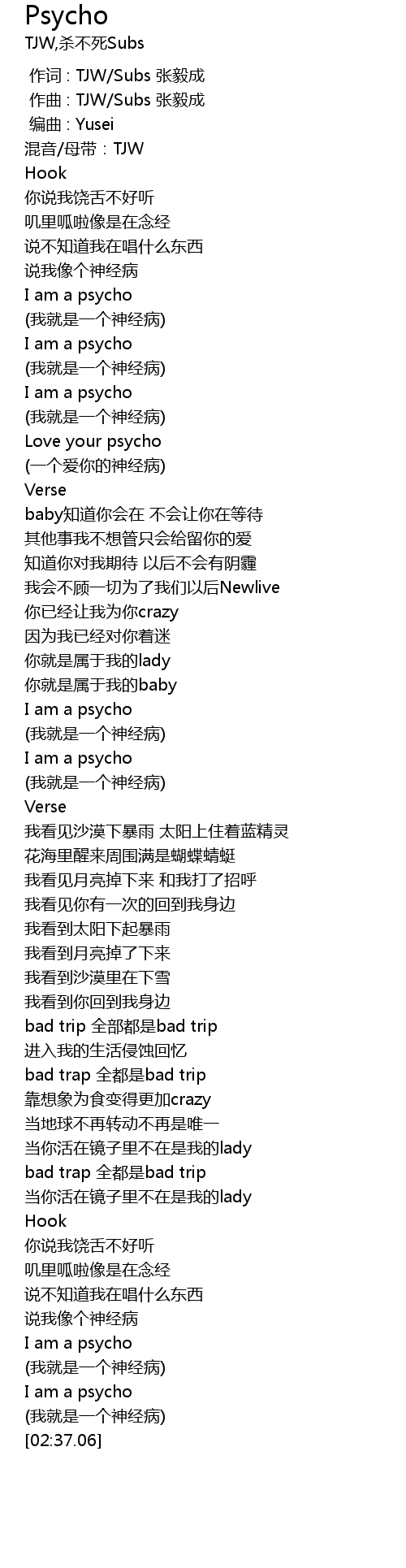 | [02:32.96] | I am a psycho |