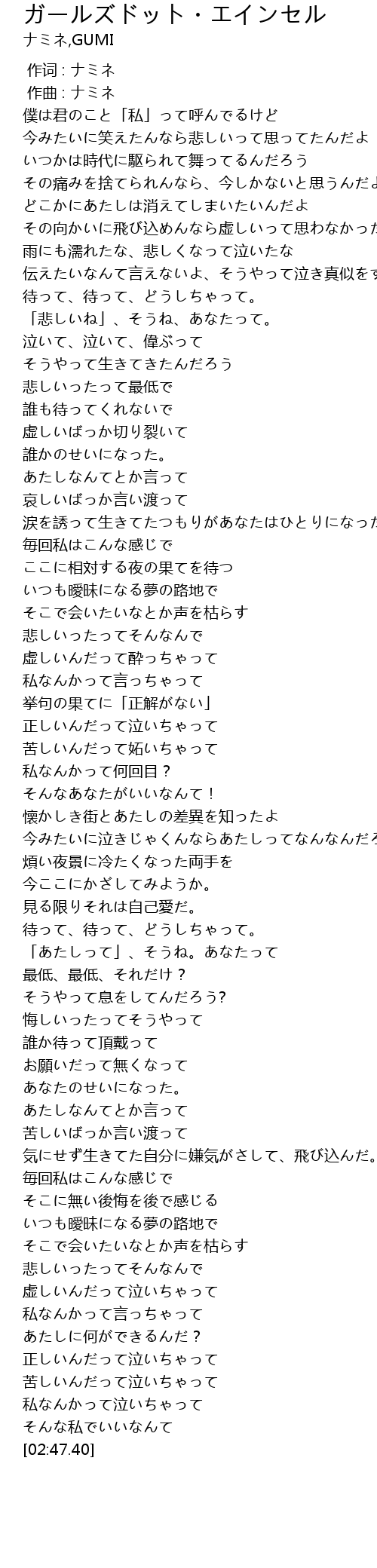 | [00:00.00] | 作词 : ナミネ |