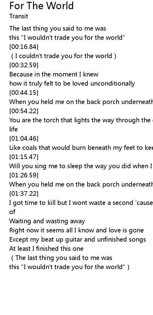 | [02:27.37] | this "I wouldn't trade you for the world") |
