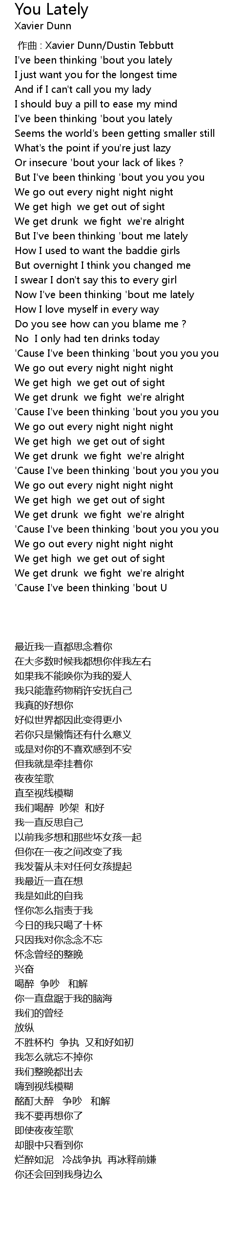 | 歌曲 | You Lately |