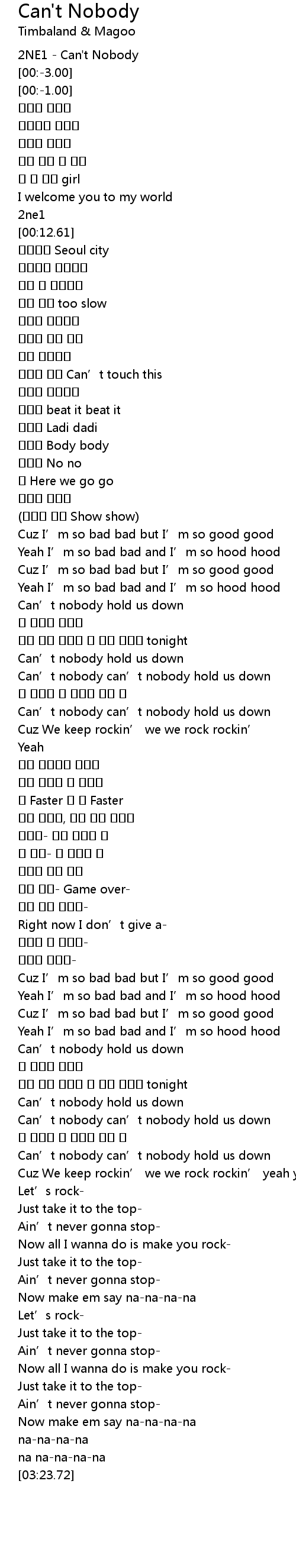 | [00:-4.00] | 2NE1 Can' t Nobody |