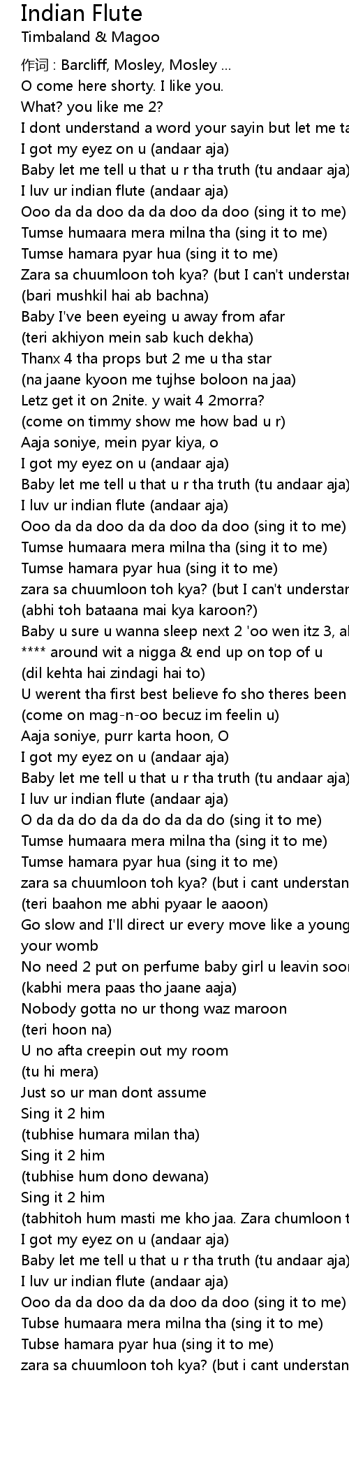 | Baby let me tell u that u r tha truth tu andaar aja | |