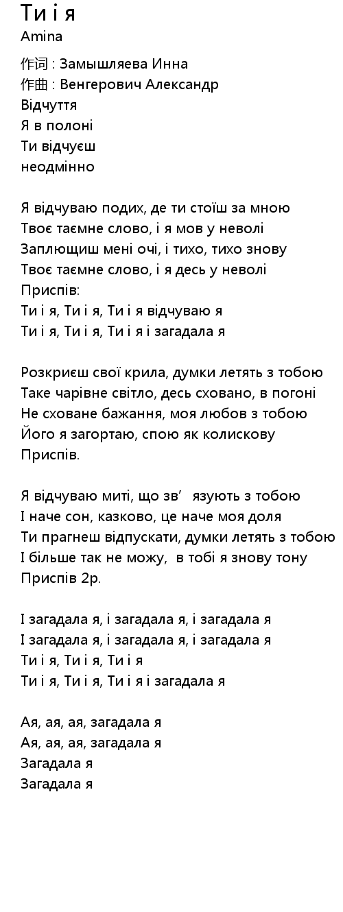 Ти і я, Ти і я, Ти і я відчуваю я |
