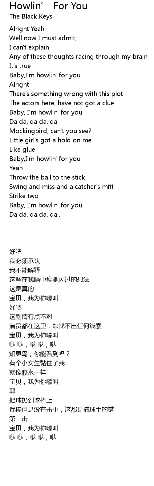 Baby, I'm howlin' for you |