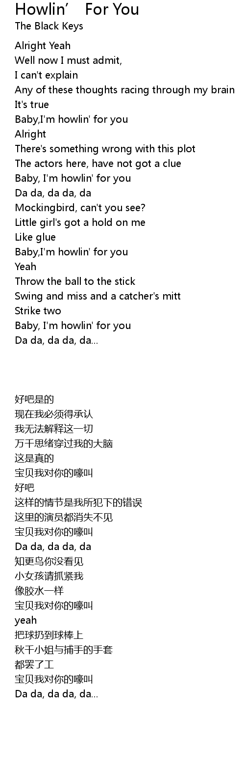 Baby, I'm howlin' for you |