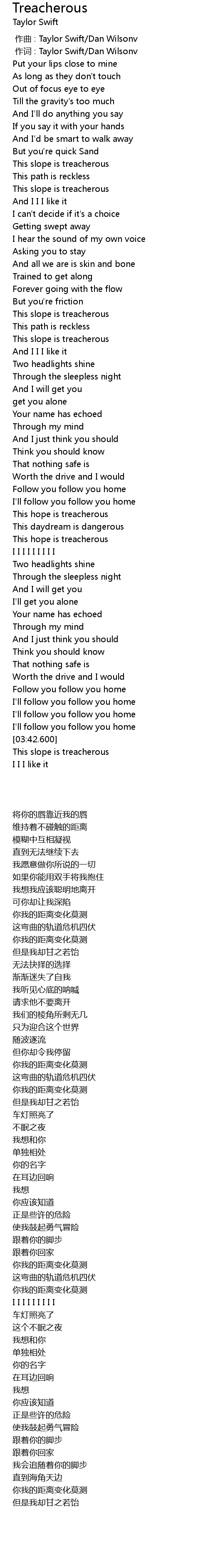 | 歌曲 | Treacherous |