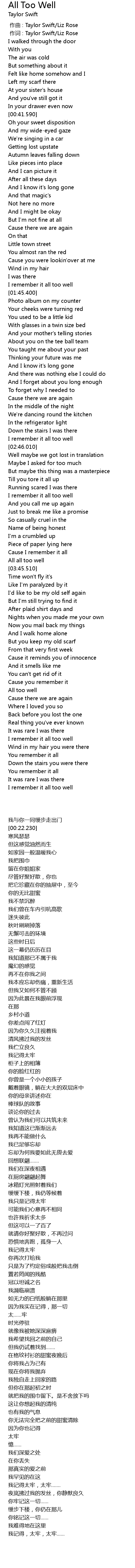 | [03:37.900] | All all too well |