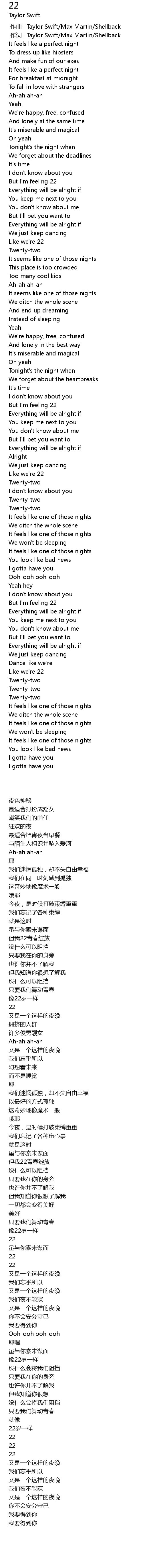 | [00:01.00] | 作词 : Taylor Swift/Max Martin/Shellback |