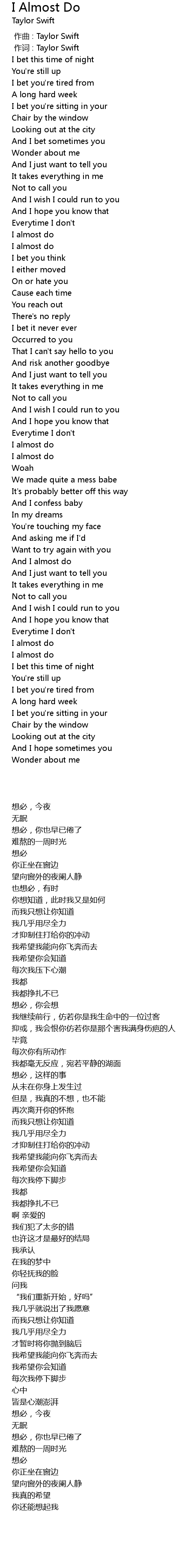 | 歌曲 | I Almost Do |