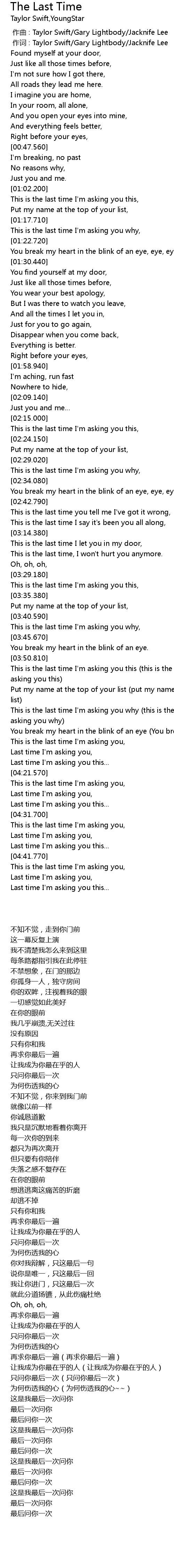 | [00:01.00] | zuò cí : Taylor Swift Gary Lightbody Jacknife Lee |