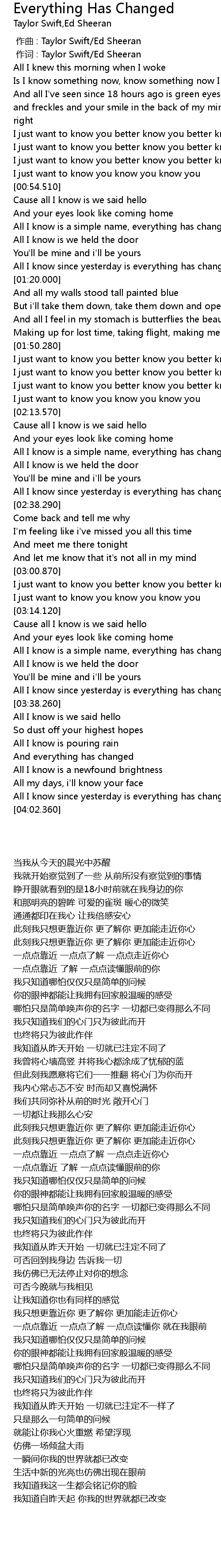 | [03:32.470] | All I know since yesterday is everything has changed |
