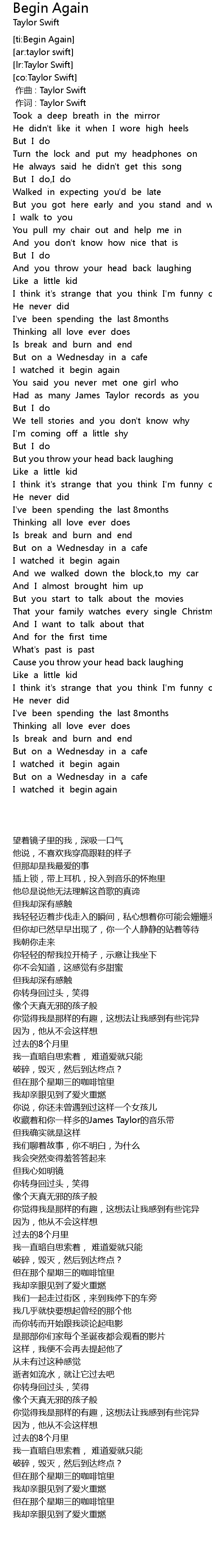 | [ti:Begin Again] | |