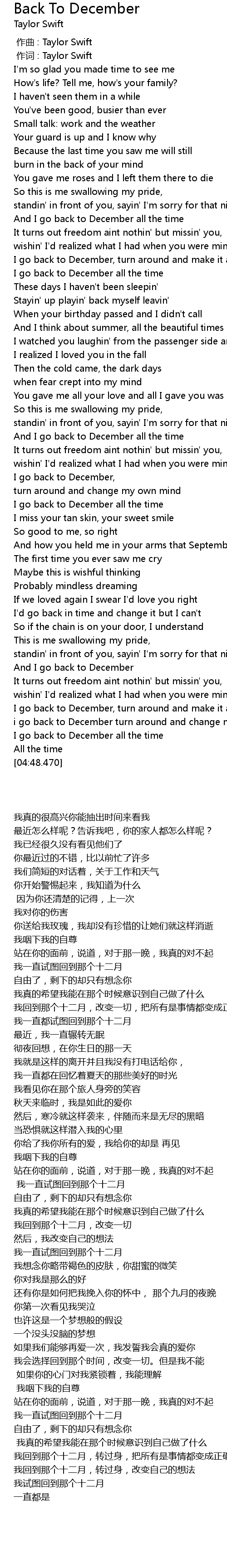 | [04:19.080] | 我回到那个十二月,转过身,改变自己的想法 |