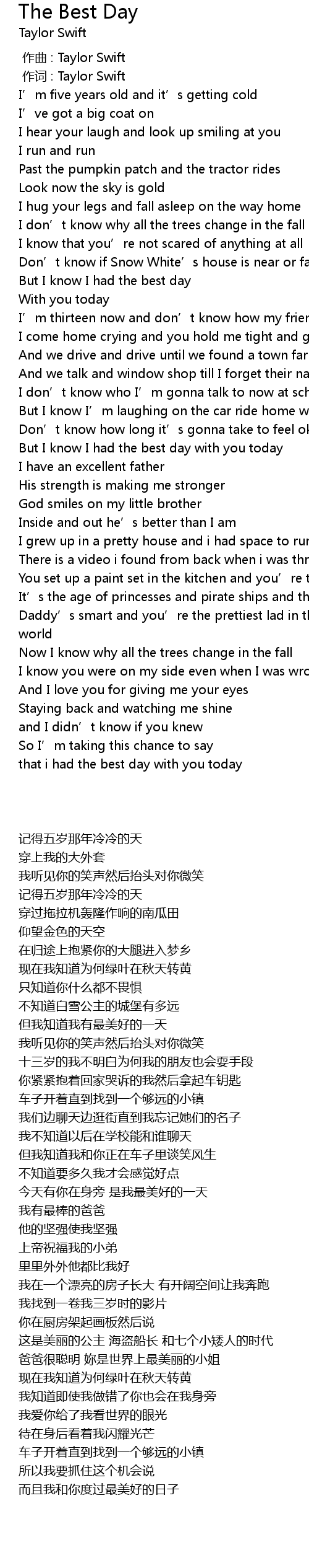 | [00:01.00] | 作词 : Taylor Swift |
