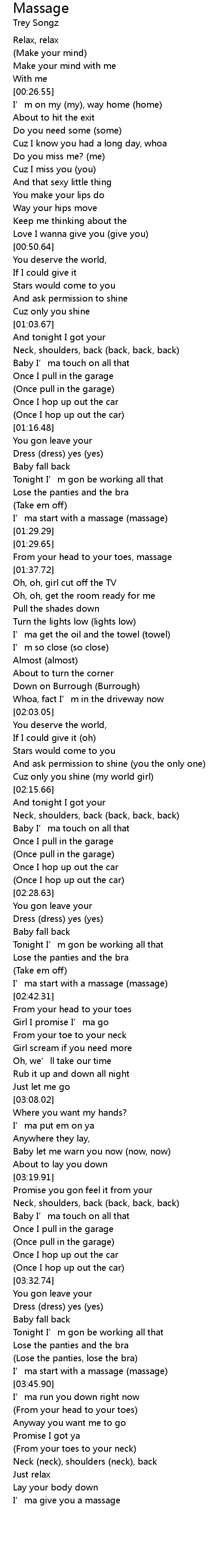 | [03:21.25] | Neck, shoulders, back (back, back, back) |