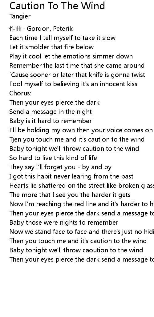 | Then you touch me and it' s caution to the wind | |
